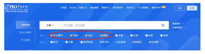第一步:將搜索框下方默認的博碩、會議、報紙這幾個檢索范圍去掉,只保留學術期。
