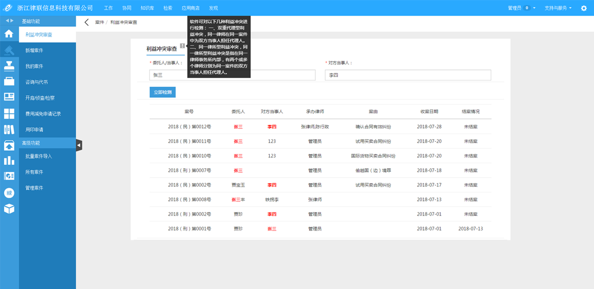 并且我們可以在系統(tǒng)里面設置委托人成對方當事人審查是否沖突。